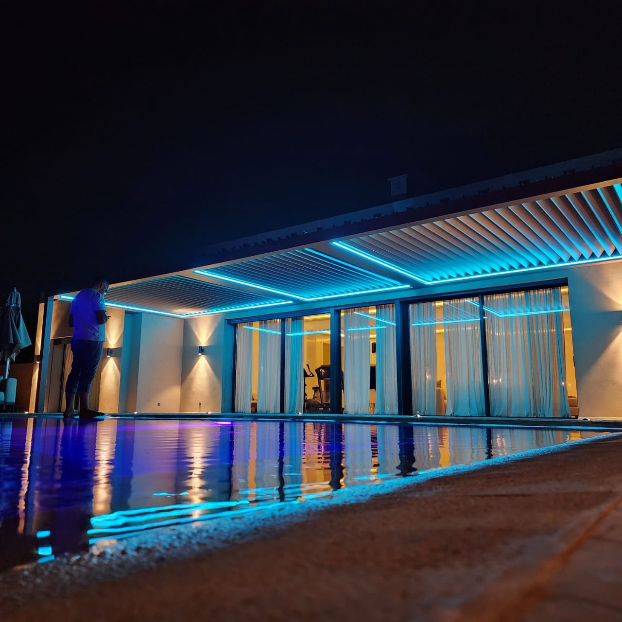 La pergola bioclimatique est une installation extérieure innovante, conçue pour moduler naturellement la lumière, la ventilation et la protection contre la pluie grâce à ses lames orientables en aluminium. Adaptée aux variations climatiques de Casablanca, elle offre un confort optimal toute l’année en créant un espace convivial et modulable entre intérieur et extérieur.