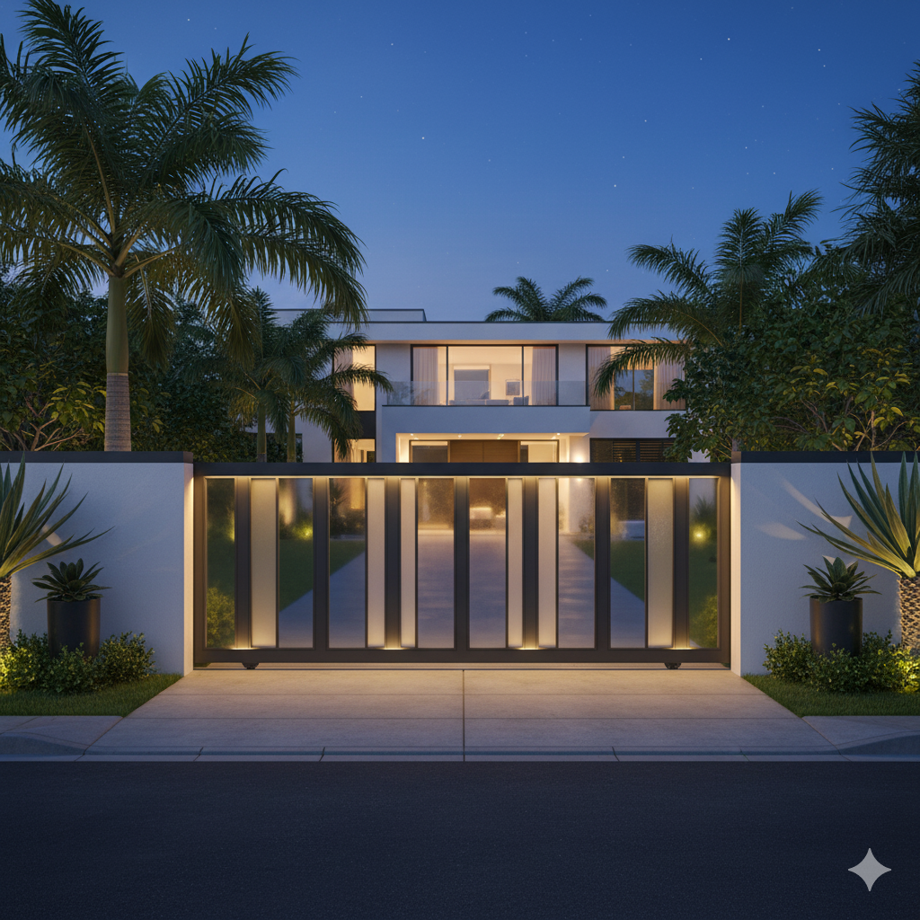 Ce portail offre une protection optimale grâce à sa structure en aluminium résistante à la corrosion et aux intempéries. Son design personnalisable valorise l’entrée de votre villa tout en garantissant un système d’ouverture facile et fiable.